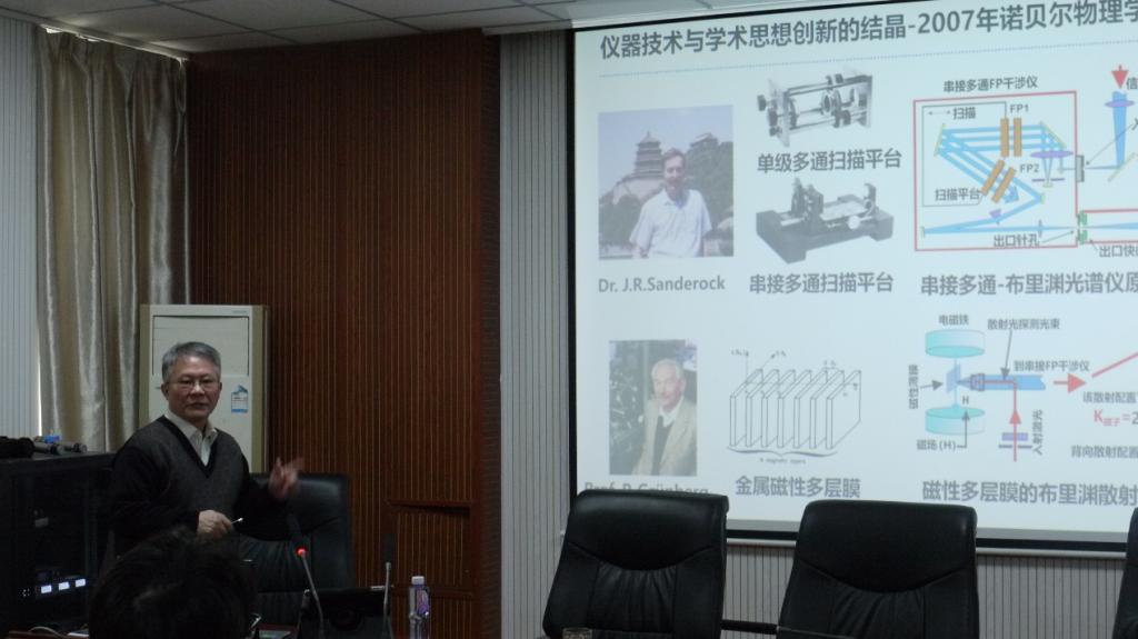 报告会上,刘玉龙研究员简要讲述拉曼散射基本原理。拉曼散射是研究分子(固体)的振动或转动性质,及固体元激发以及它们之间相互作用的重要手段。通过对光散射光谱位移,强度、线形以及偏振状态等的分析,可以得到物质种类、及其结构和元激发的信息。报告结合光谱学的特点,给出在ZnO功能材料上的研究应用。