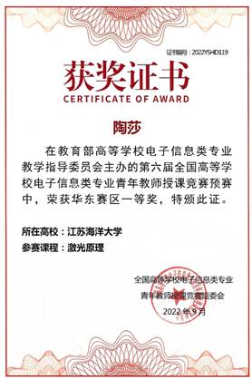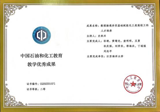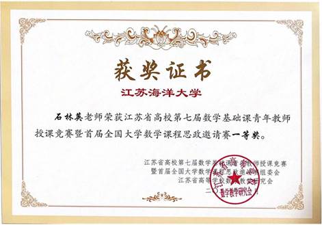 教学成果日益丰硕。获中国石油和化工公司产品优秀成果二等奖1项,校教学成果奖一等奖、二等奖、三等奖各1项;立项江苏高校“人才素质教育与数字化课程建设”专项课题1项,江苏省教育科学“十三五”规划2020年度重点资助课题1项,江苏省高质量公共课教学改革研究项目2项,教育部产学研“协同育人”项目5项。《概率论与数理统计(第三版)》获江苏省本科优秀培育教材。教学能力不断提升。获全国高等学校电子信息类专业青年教师授课竞赛三等奖2项,江苏省高校微课教学比赛一等奖1项、二等奖2项、三等奖5项,江苏高校数学基础课青年教师授课竞赛一等奖3项、二等奖4项、三等奖2项。