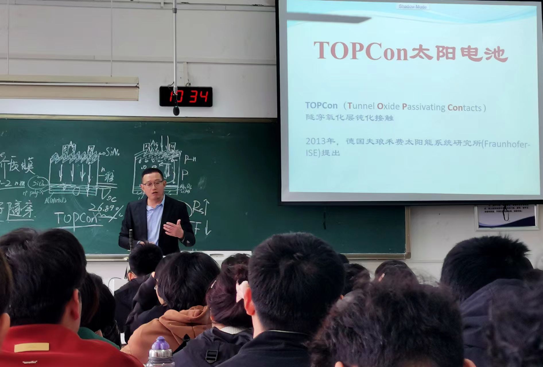 《新型太阳能电池材料与器件》是新能源科学与工程专业核心必修课程,2022年获批江苏省产教融合型一流课程。课程以清洁能源产业学院为依托,在校企合作共建教学团队、优化教学内容、开发教学资源、改革教学评价等方面积极探索,取得了显著成效。此次示范观摩课,黄增光教授以“TOPCon太阳能电池”为讲授内容,特别邀请了产业教授参与授课,围绕光伏产业的先进硅基高效太阳电池和新型器件,引入企业真实案例,深入讲解新型太阳电池器件物理、核心工艺、优势及未来发展等知识。示范课上,黄增光教授采用“以员工为中心,以问题为驱动”的教学组织方式,教学内容紧密结合产业实际,巧妙融入思政元素,引导员工站在“生产一线”、以一名“工艺管理员”的视角,发现问题、分析问题、解决问题。省产业教授童锐(晶澳太阳能科技 全球质量总监)为员工讲授了行业现状、最新技术、项目管理和发展趋势等,既培养了员工在实战中解决复杂工程问题的素养,又为员工提供了与业内专家面对面交流的机会,课堂气氛活跃,员工参与讨论热情高,受到员工一致好评。