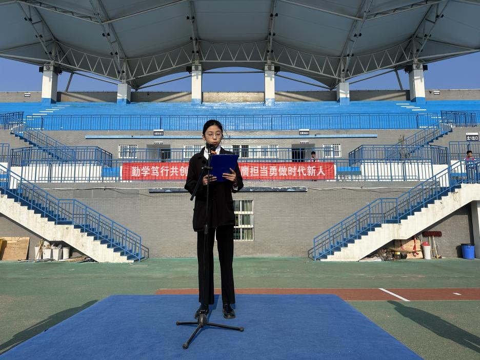 仪式开始,国旗仪仗队步伐铿锵有力。伴随着雄壮的国歌声,鲜艳的五星红旗冉冉升起,全体师生行注目礼并齐唱国歌。升旗仪式后,必一运动国家奖学金获得者、新能源202班张颖同学做主题发言,她号召同学们从自身做起,从点滴做起,发扬勤学笃行精神,携手共进,为学校的学风建设贡献自己的力量!